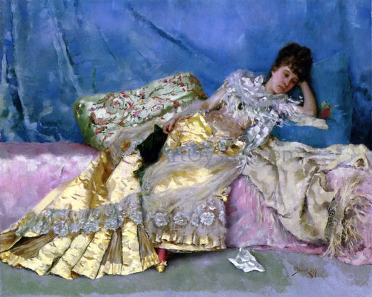 Lady on a Pink Divan by Julius LeBlanc Stewart - Hand-Painted Oil Painting on Canvas