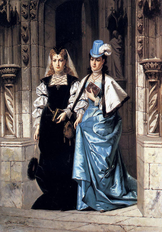 Two Elegant Ladies Leaving A Church by Ladislaus Bakalowicz - Hand-Painted Oil Painting on Canvas