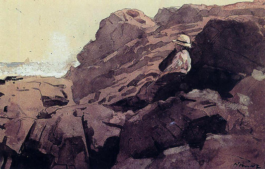 Boy on the Rocks by Winslow Homer - Hand-Painted Oil Painting on Canvas