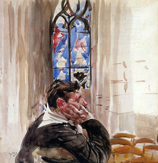 Portrait of a Man in Church by Giovanni Boldini - Hand-Painted Oil Painting on Canvas