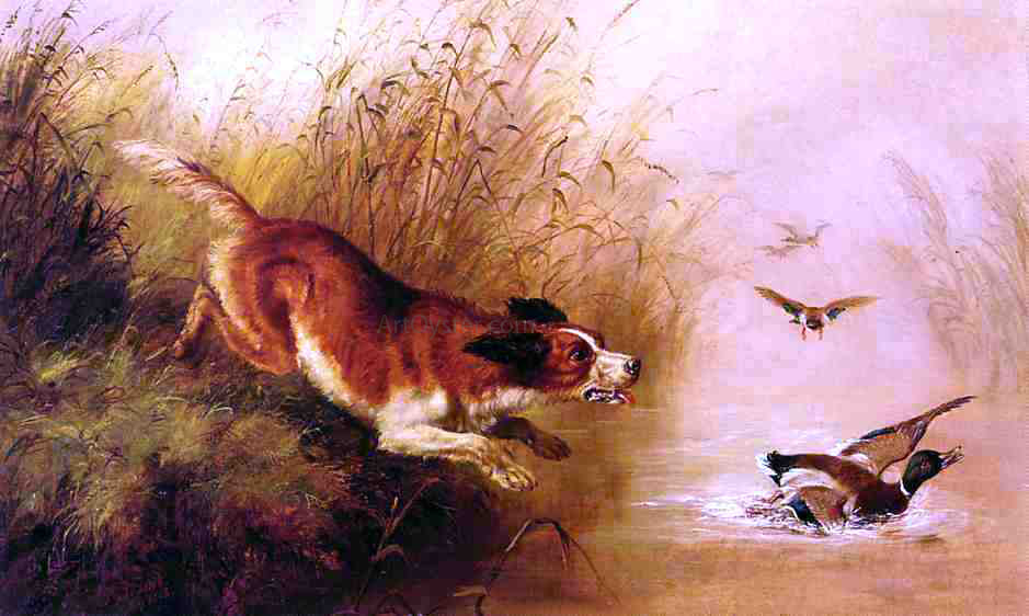 Spaniel Chasing Ducks by Arthur Fitzwilliam Tait - Hand-Painted Oil Painting on Canvas