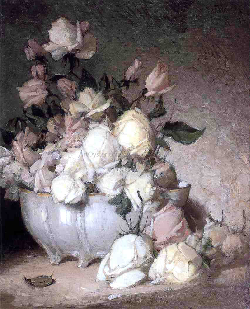 Roses in a Porcelain Bowl by John Ferguson Weir - Hand-Painted Oil Painting on Canvas