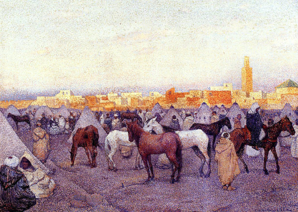 Encampment near a Moroccan Village by Theo Van Rysselberghe - Hand-Painted Oil Painting on Canvas