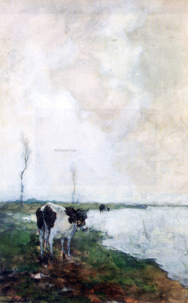 A Cow Standing By The Waterside In A Polder by Johann Hendrik Weissenbruch - Hand-Painted Oil Painting on Canvas