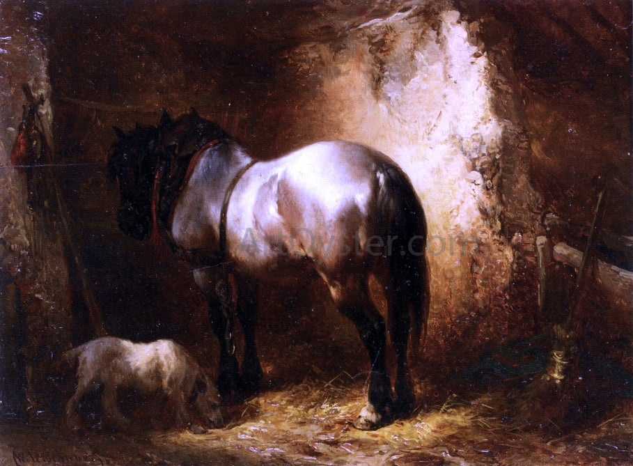A Horse in a a Stable by Wouterus Verschuur - Hand-Painted Oil Painting on Canvas